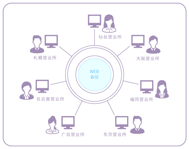 并且,可应对全国的同时、地域限定等各种规模的会议。通过清晰的画面和声音的精确度,让人感觉不到是远距离对话,促进与客户的顺利交流沟通。