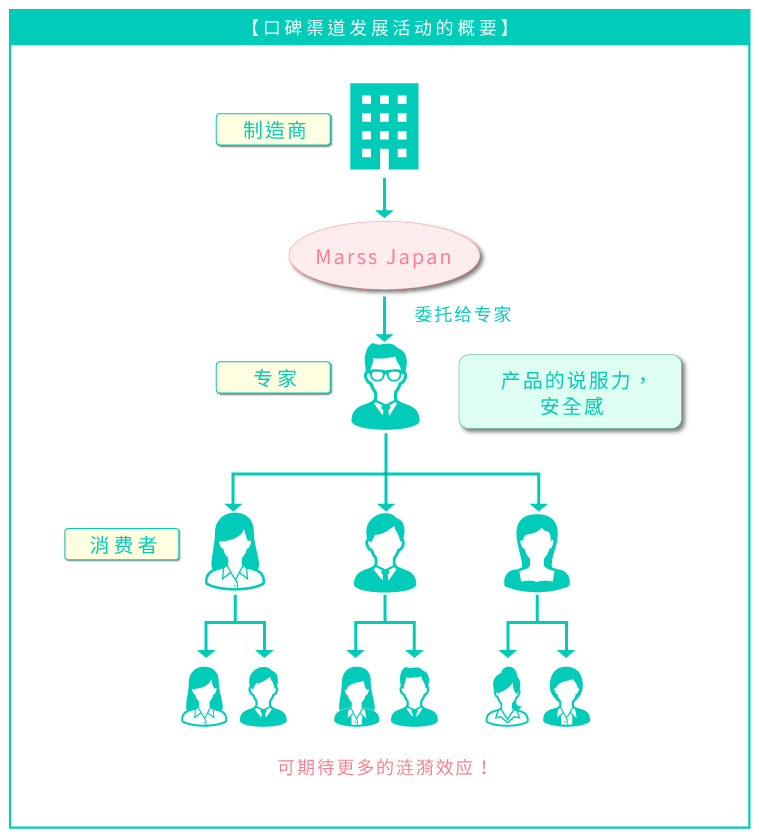 如上所述,Marss Japan积极开发渠道,既不通过媒体也不依赖广告。根据客户的要求,我们还能建立与各行业的专业人士建立联系的渠道。