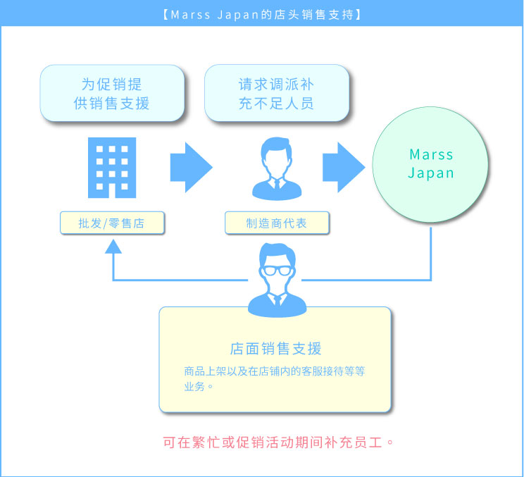 我们可以为店头举办促销活动提供销售支援,促进店头销售。